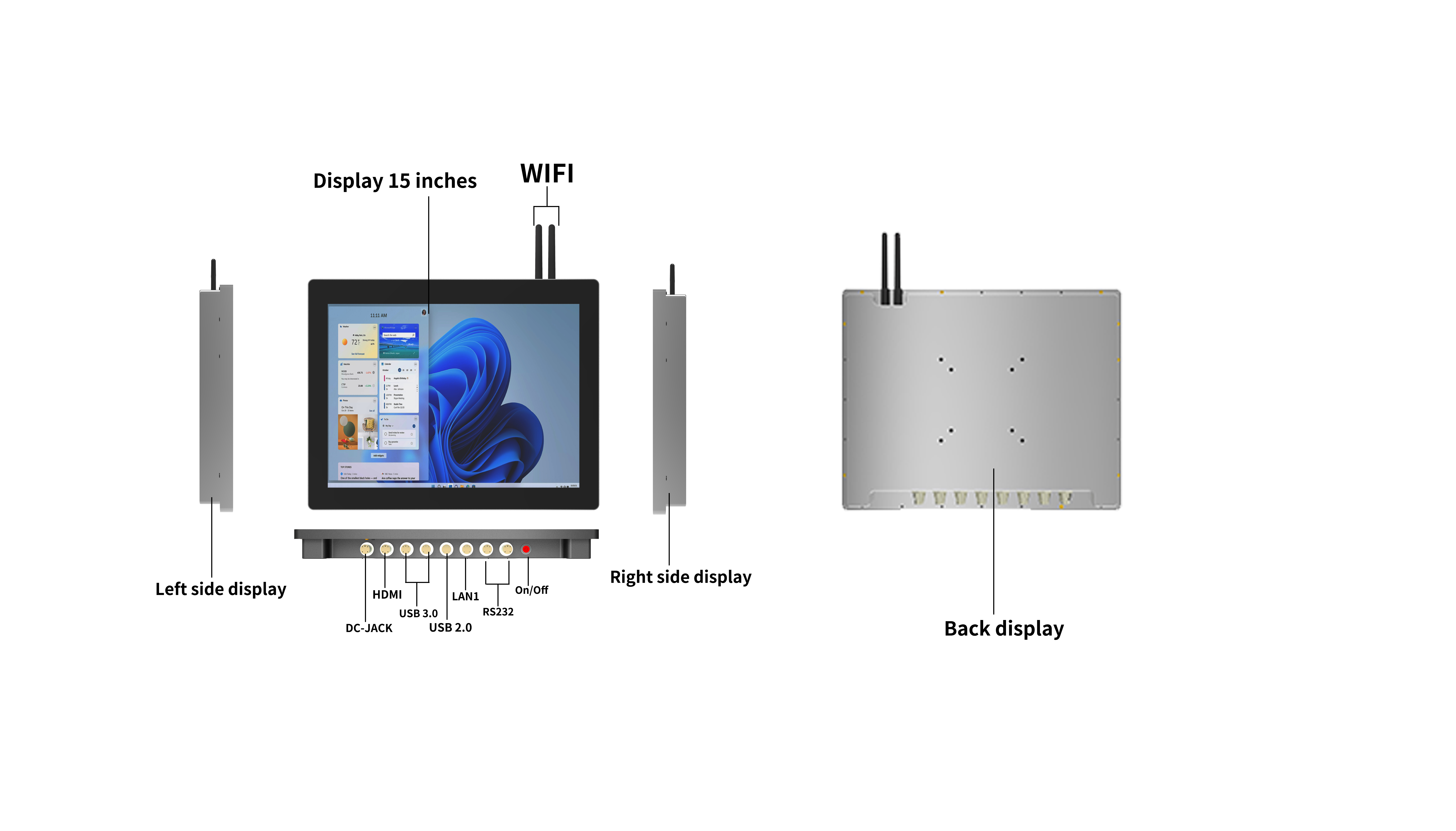 실용적인 멀티 시스템 방수 산업용 PC: 여러 CPU(국내 포함), 15인치 HD 화면, 안정적인 WiFi/블루투스. IP65 방수 + 와이드 온도 복원력(물류/산업 장면 처리). 12V 전원 + 옵션 스피커 - 업계 간 운영에 안정적입니다.
