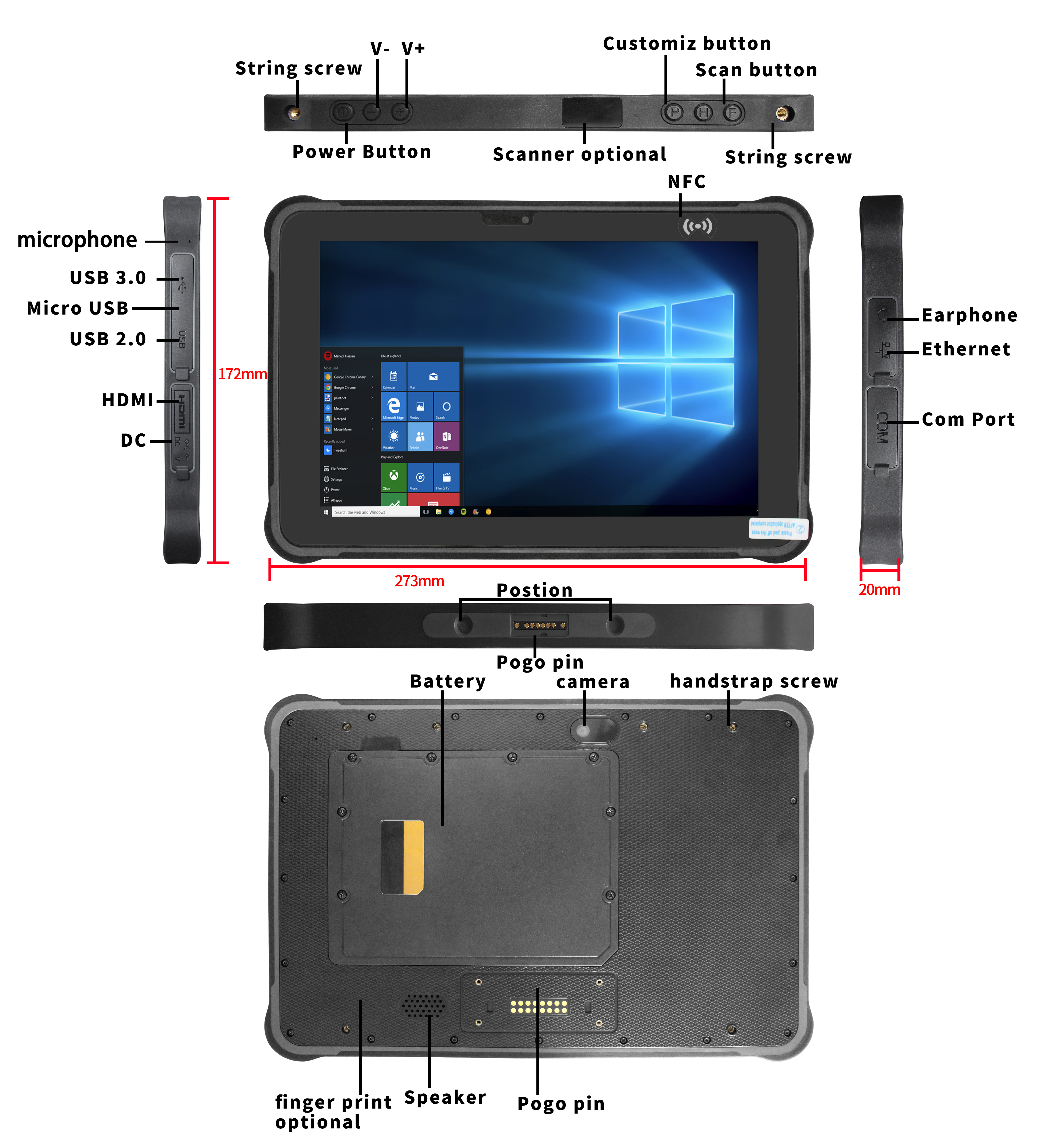 다양한 시나리오를 위한 Windows 견고한 태블릿: Win10은 작업 앱을 원활하게 실행합니다. 10.1인치 HD 화면, 12000mAh 종일 배터리. 안정적인 4G/WiFi, IP65 보호 + 낙하 저항은 산업/자동차 환경을 처리합니다. 사용자 지정이 가능하고 물류/화학 작업에 실용적입니다.